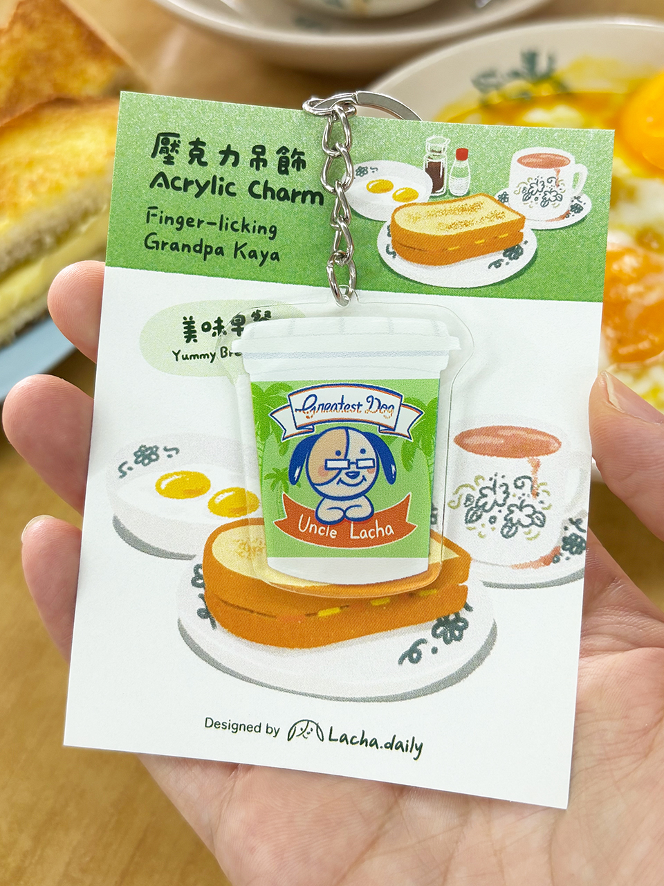 把傳統的甜蜜味道隨身攜帶吧!“加椰爺爺” 壓克力鑰匙扣的設計靈感,來自馬來西亞人早餐桌上熟悉的加椰醬罐,讓人想起與家人共享早餐的溫馨時光。
