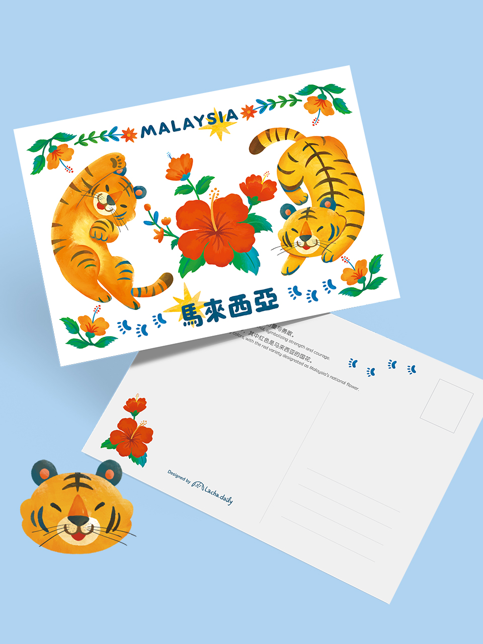 這不只是一張明信片,而是馬來西亞的縮影。將虎的勇猛與花的熱情一同寄出,讓收件人感受到南洋的溫度與文化的力量。